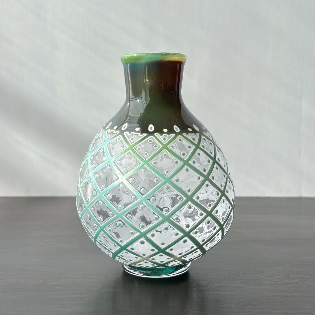 吹きガラスで制作した花器です。