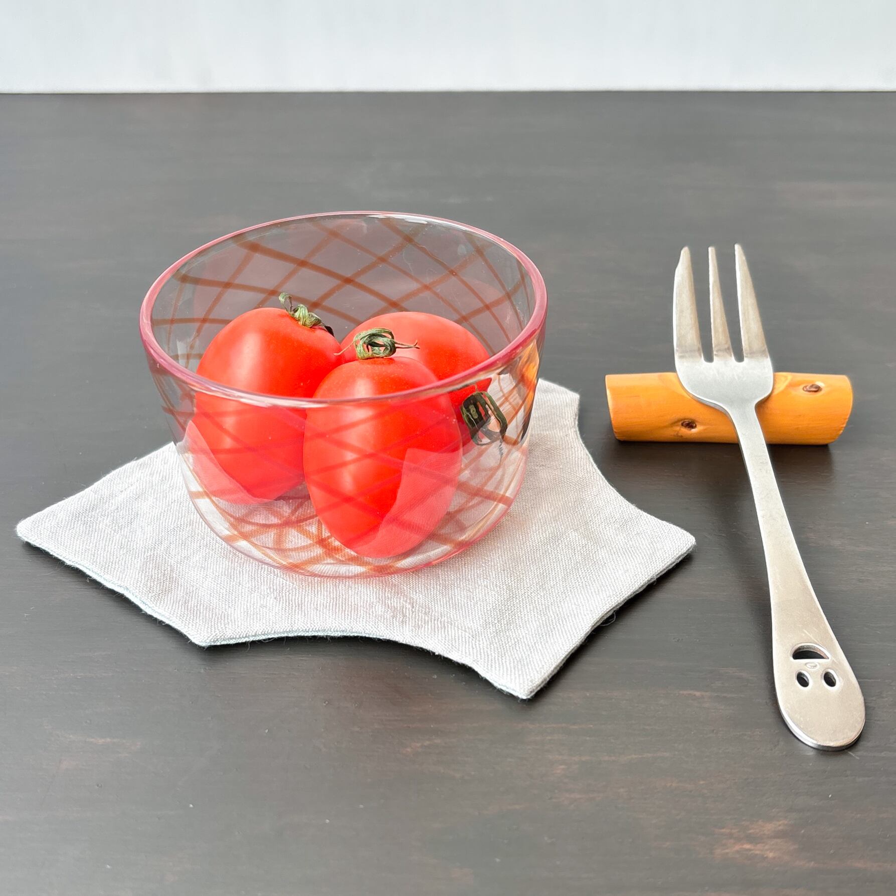 クリアガラスの表面に茶色の色ガラス棒をつけ、