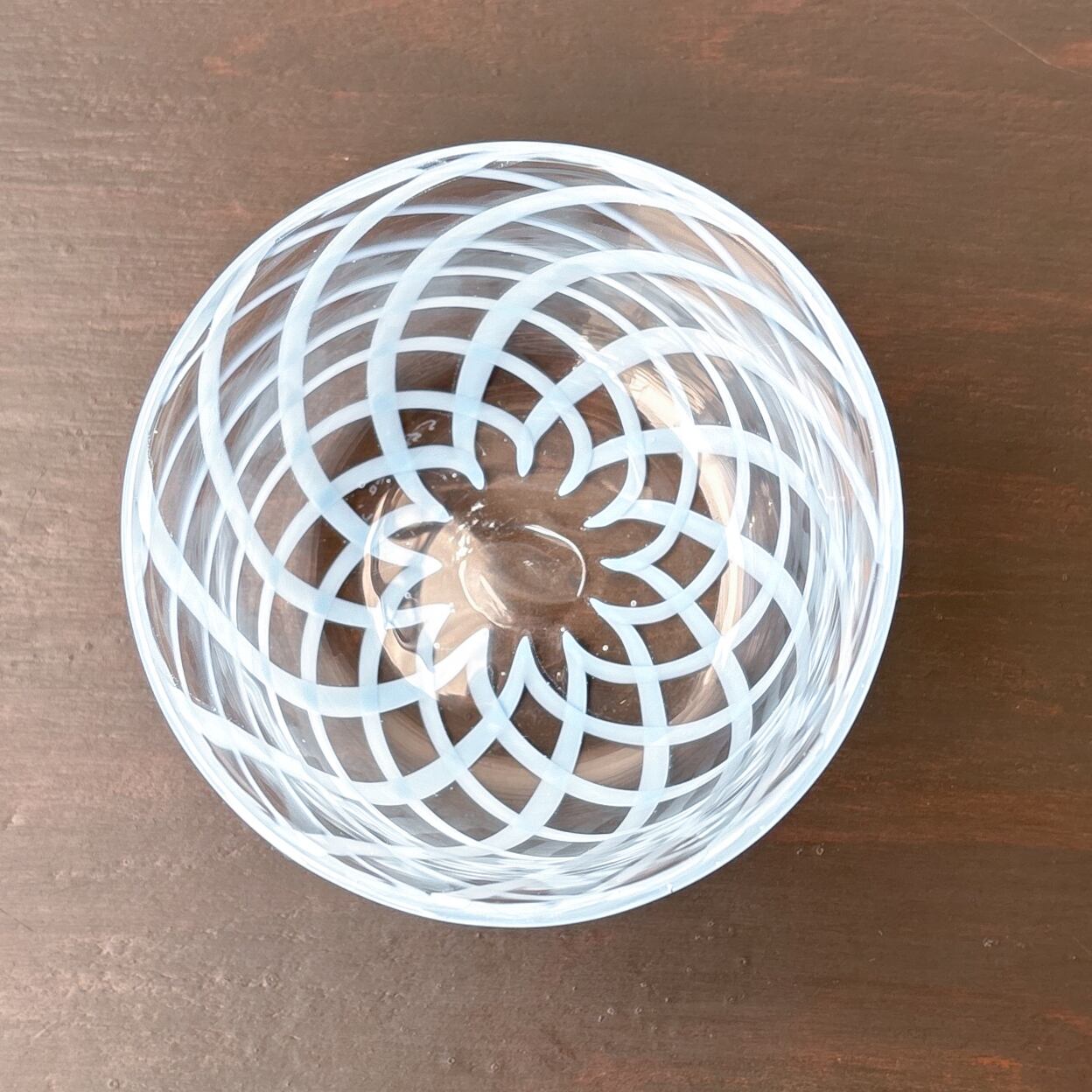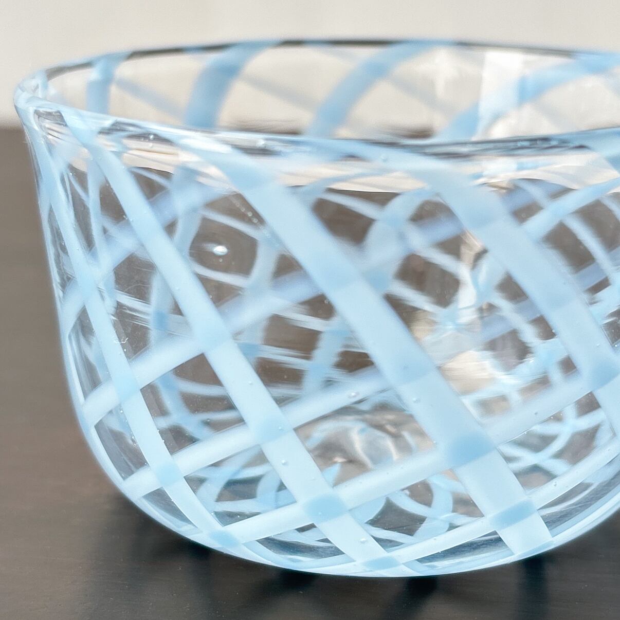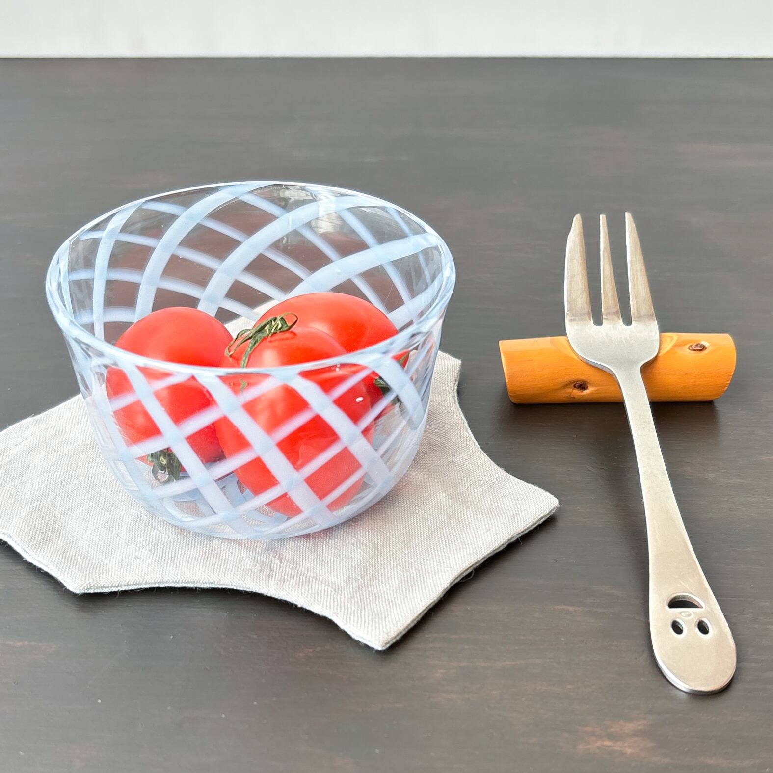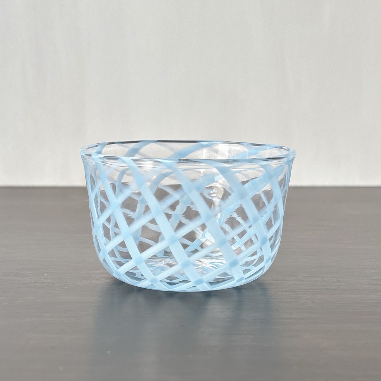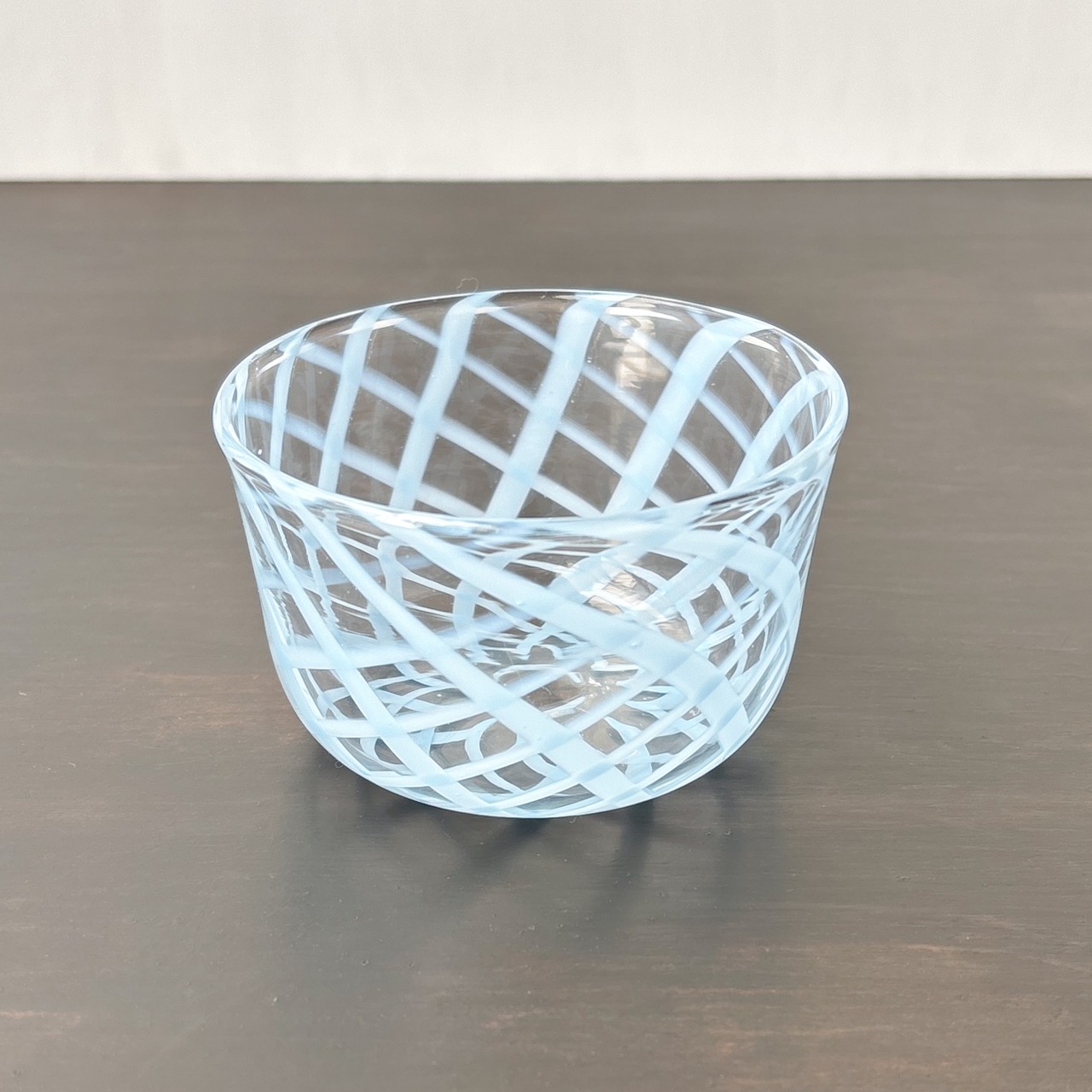 クリアガラスの表面に水色の色ガラス棒をつけ、