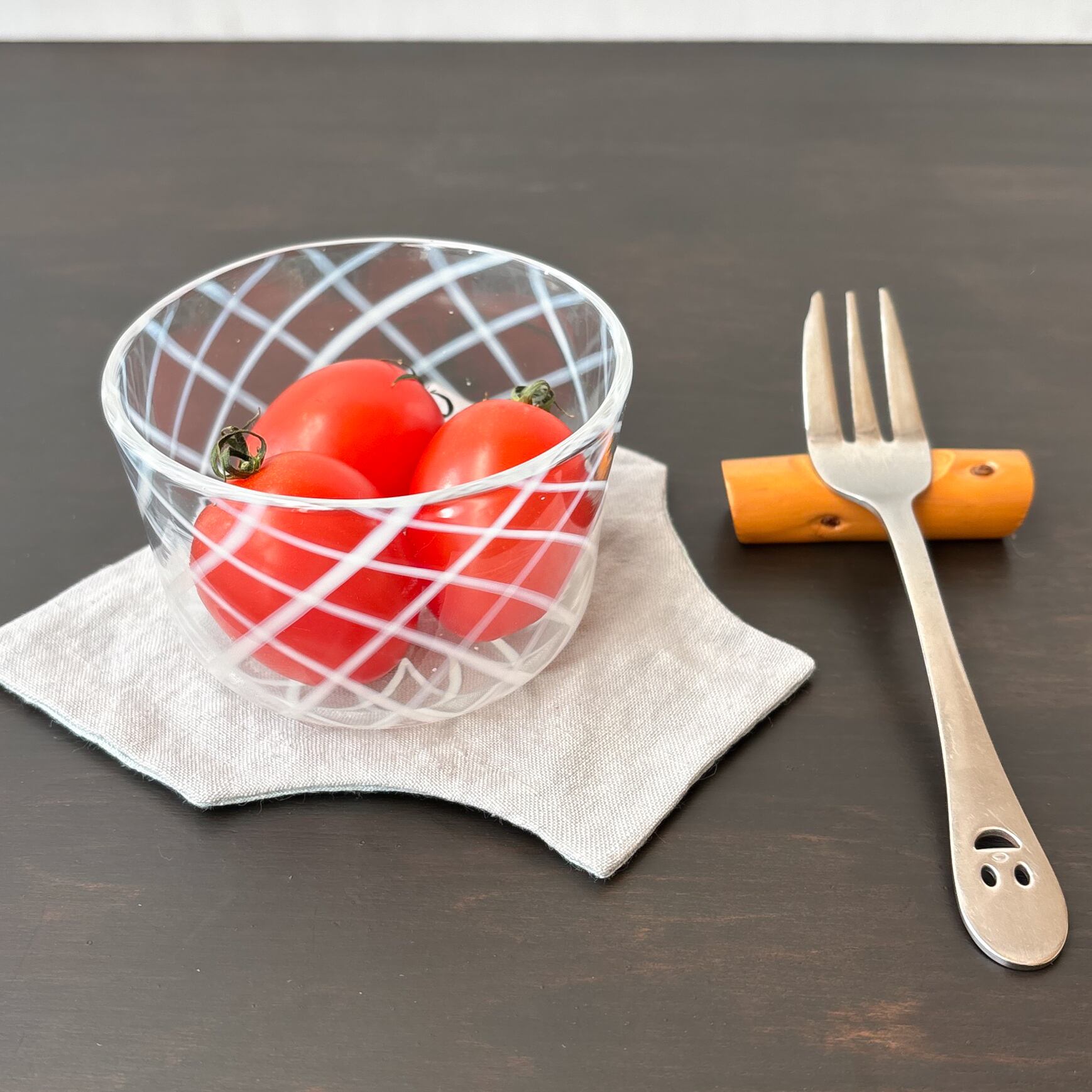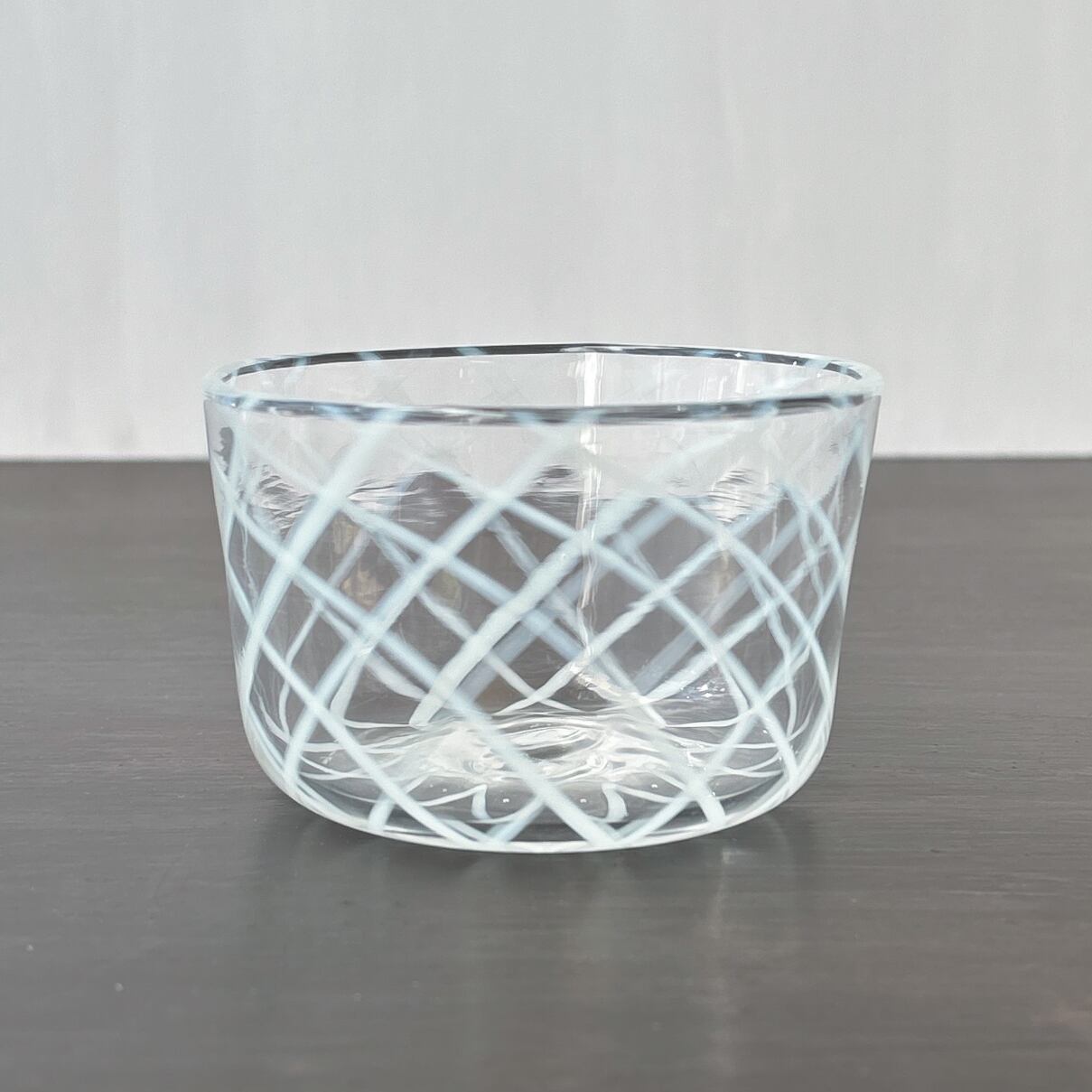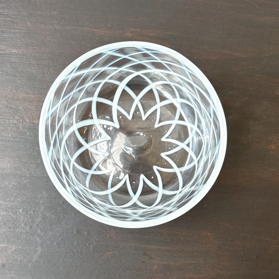 クリアガラスの表面に乳白緑色の色ガラス棒をつけ、