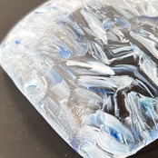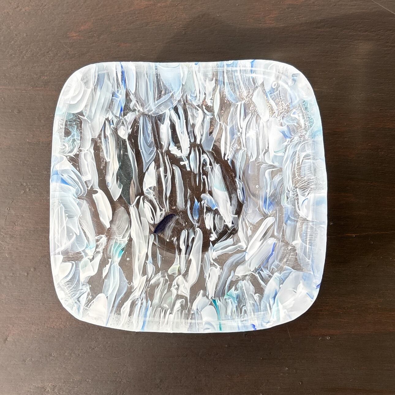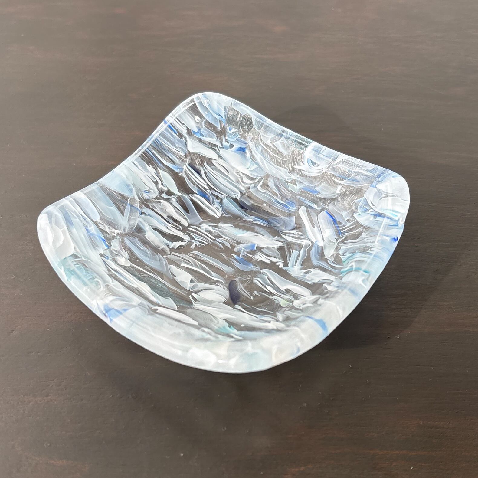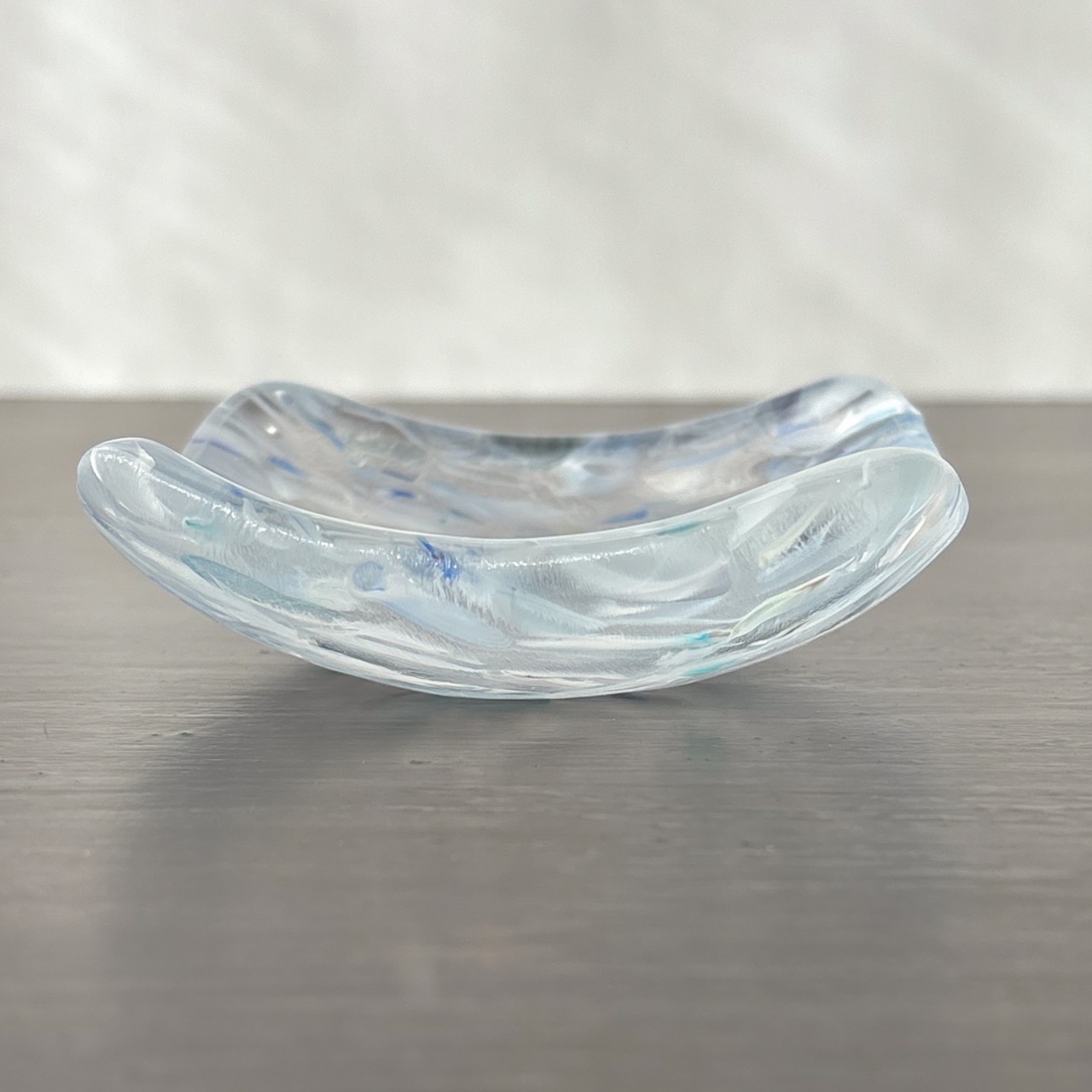 半透明の白と透明な青色が並んだ模様の豆鉢です。