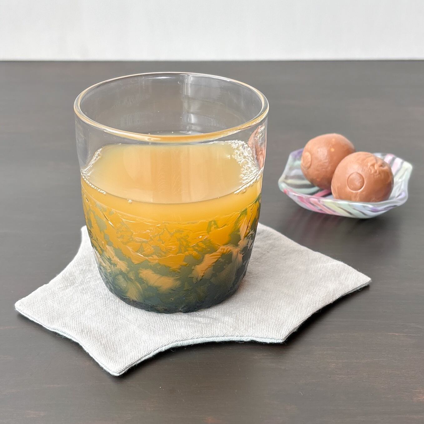 ロックグラスの形に吹き上げます。