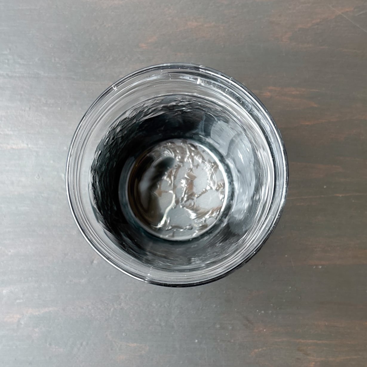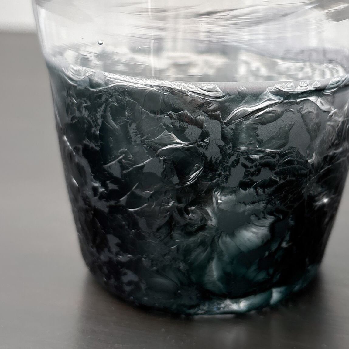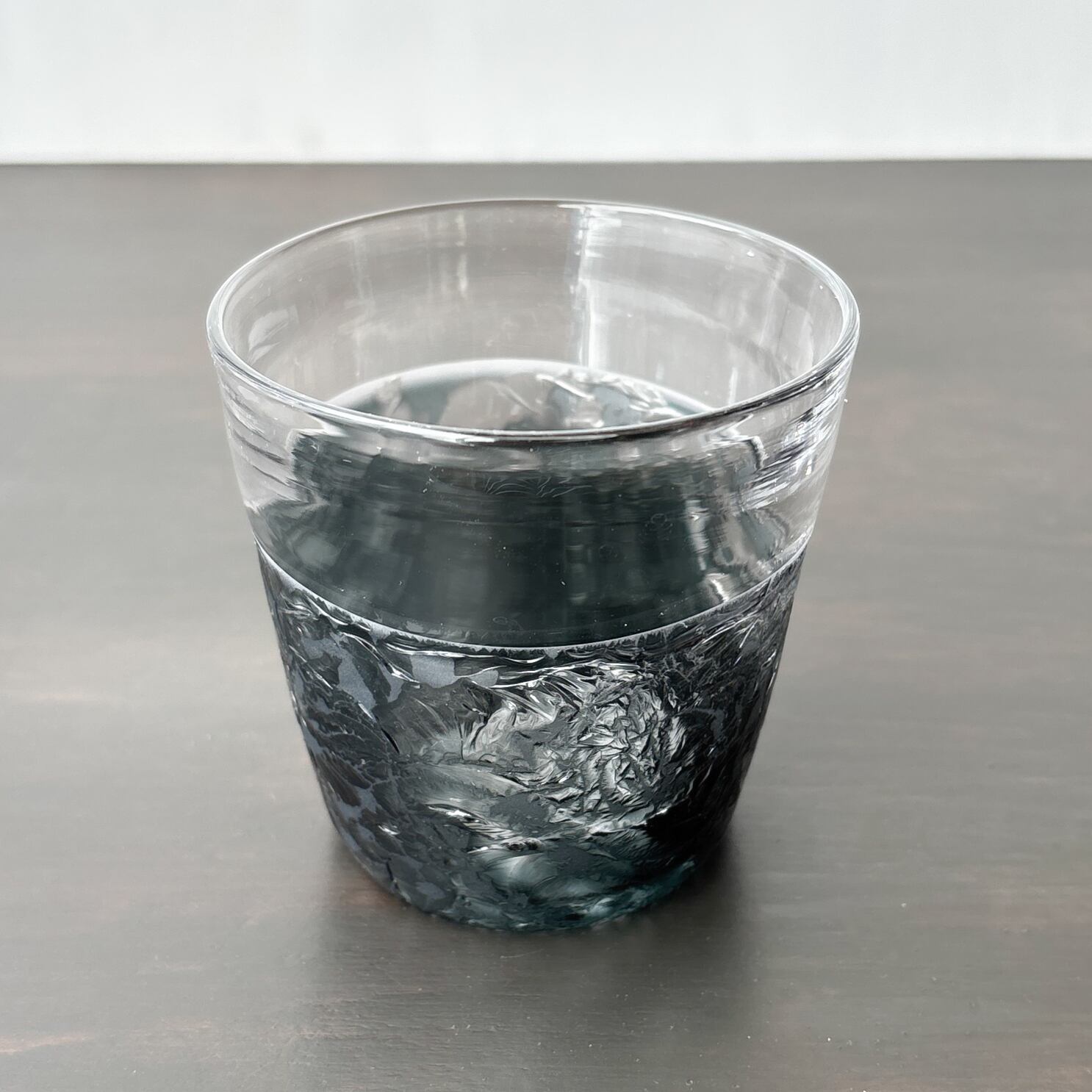 上部はクリアガラス、下部に透明な濃い灰色の色ガラスを一番外側に被せて、