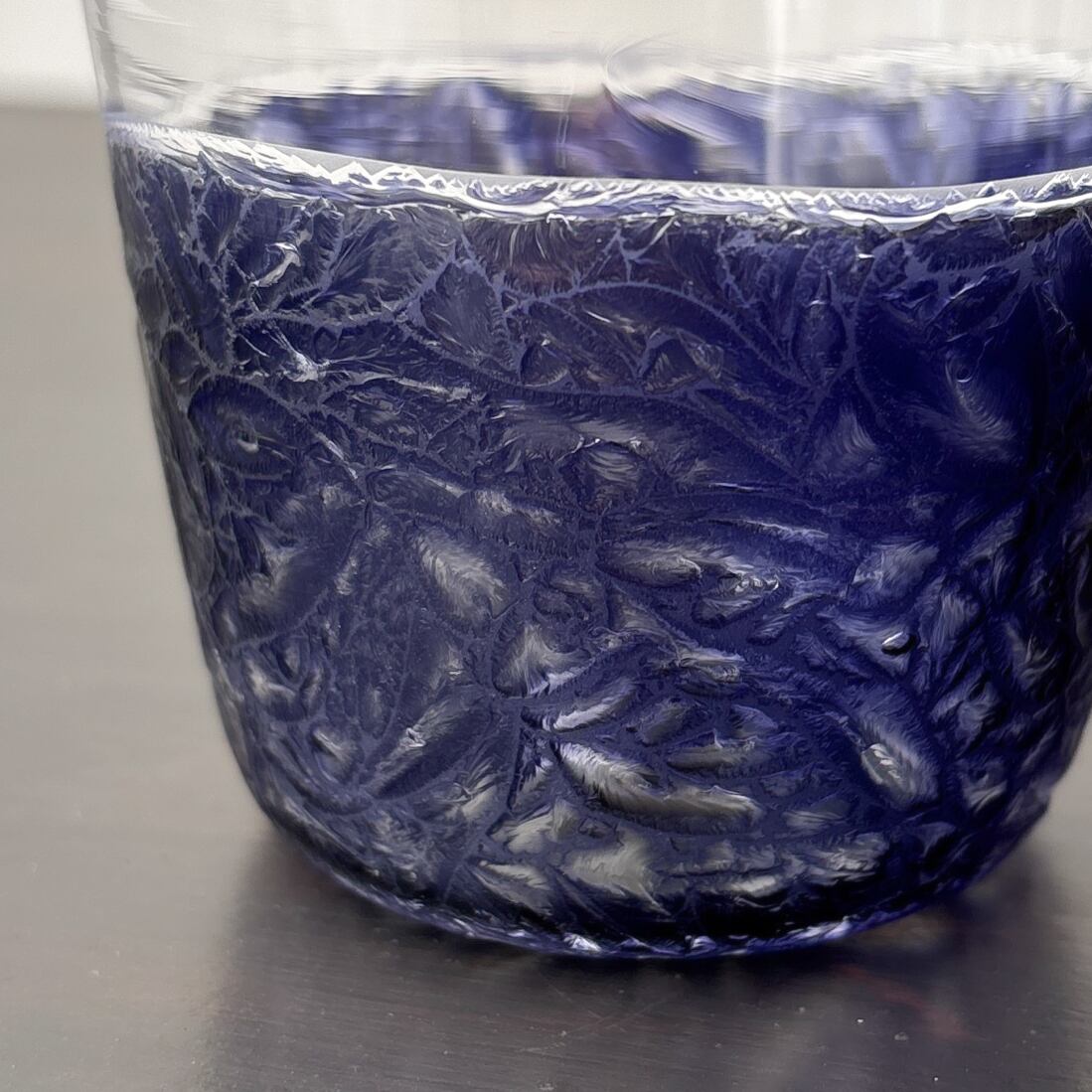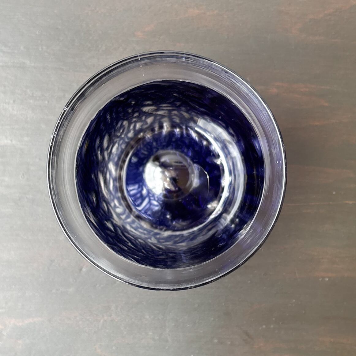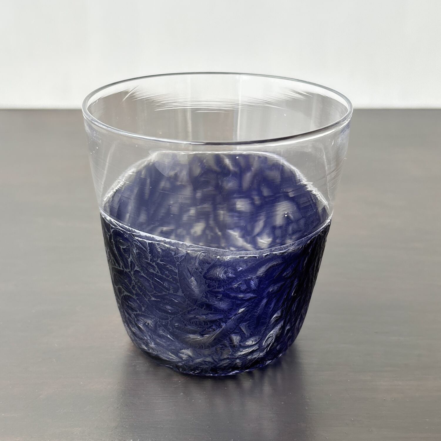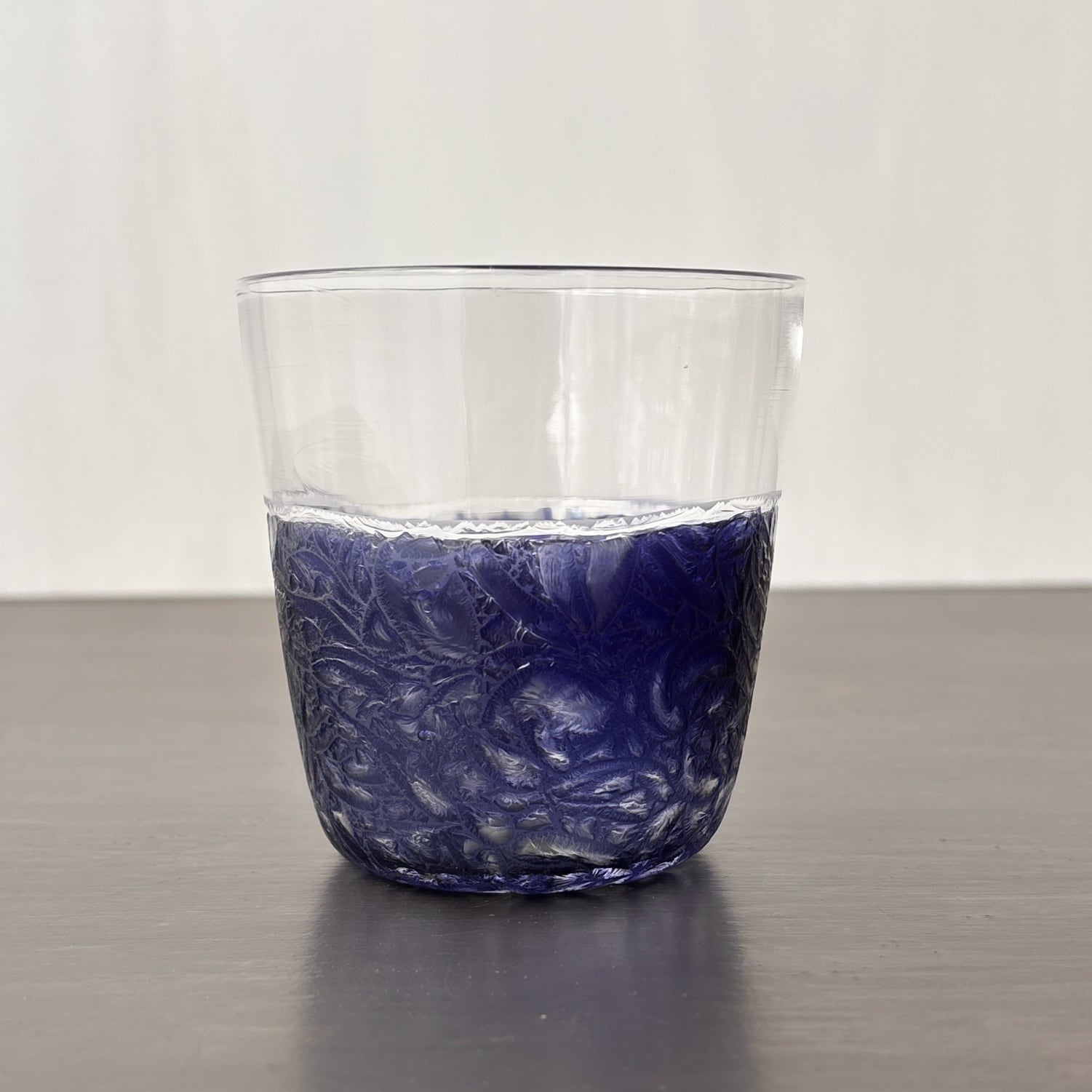 上部はクリアガラス、下部に透明な濃い紫色の色ガラスを一番外側に被せて、