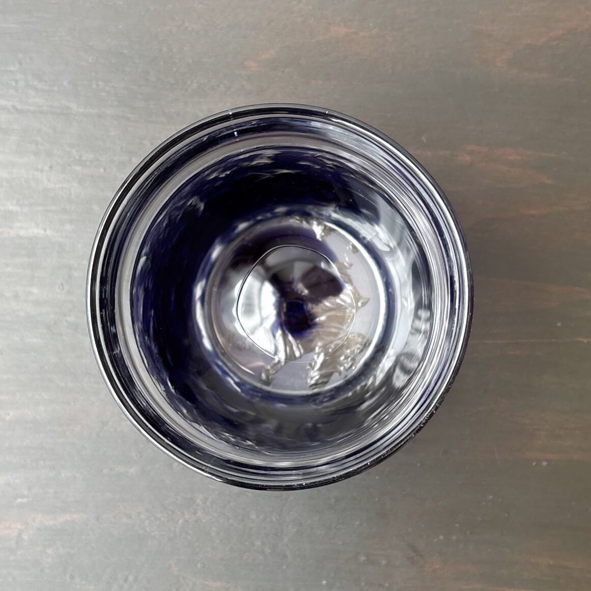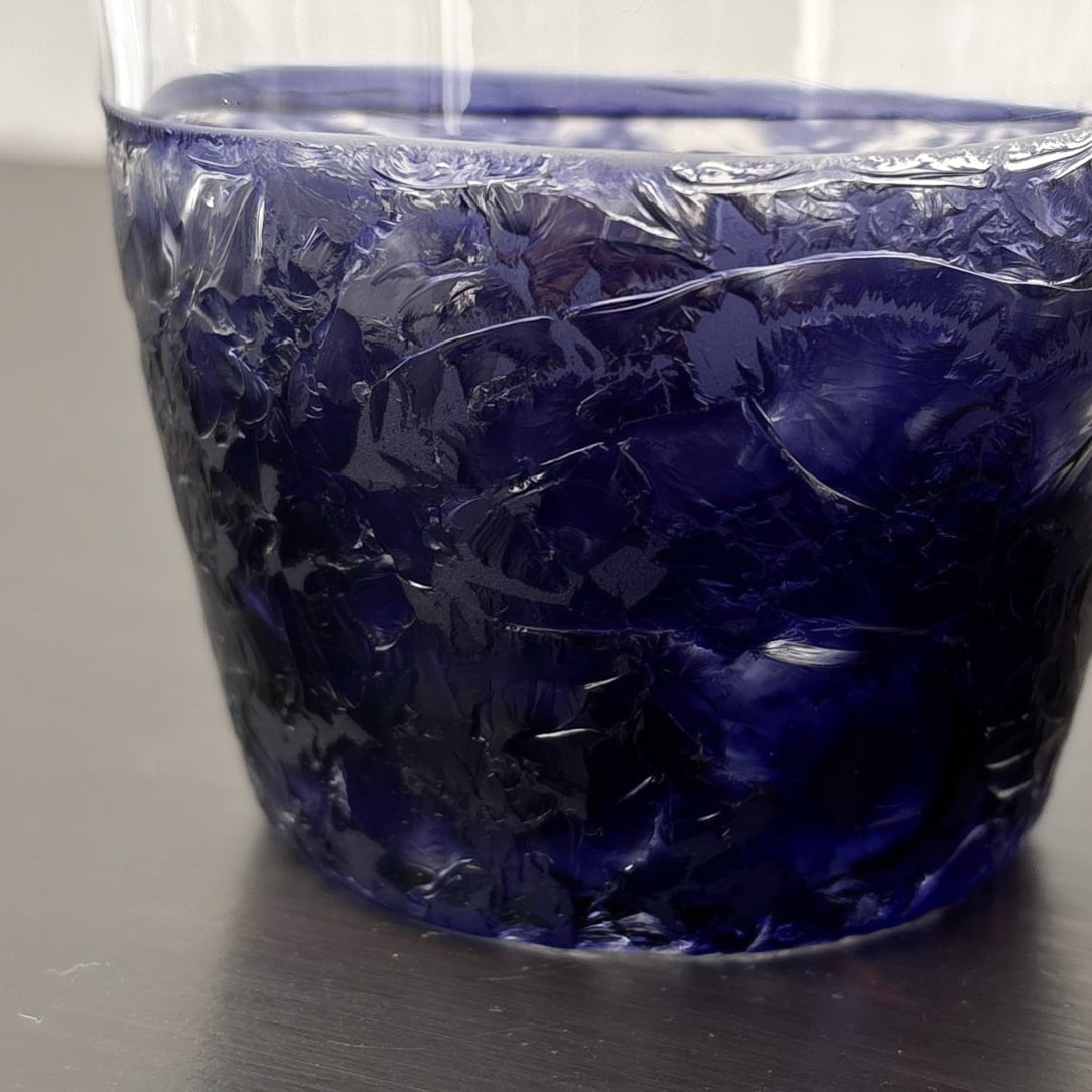 上部はクリアガラス、下部に透明な濃い紫色の色ガラスを一番外側に被せて、