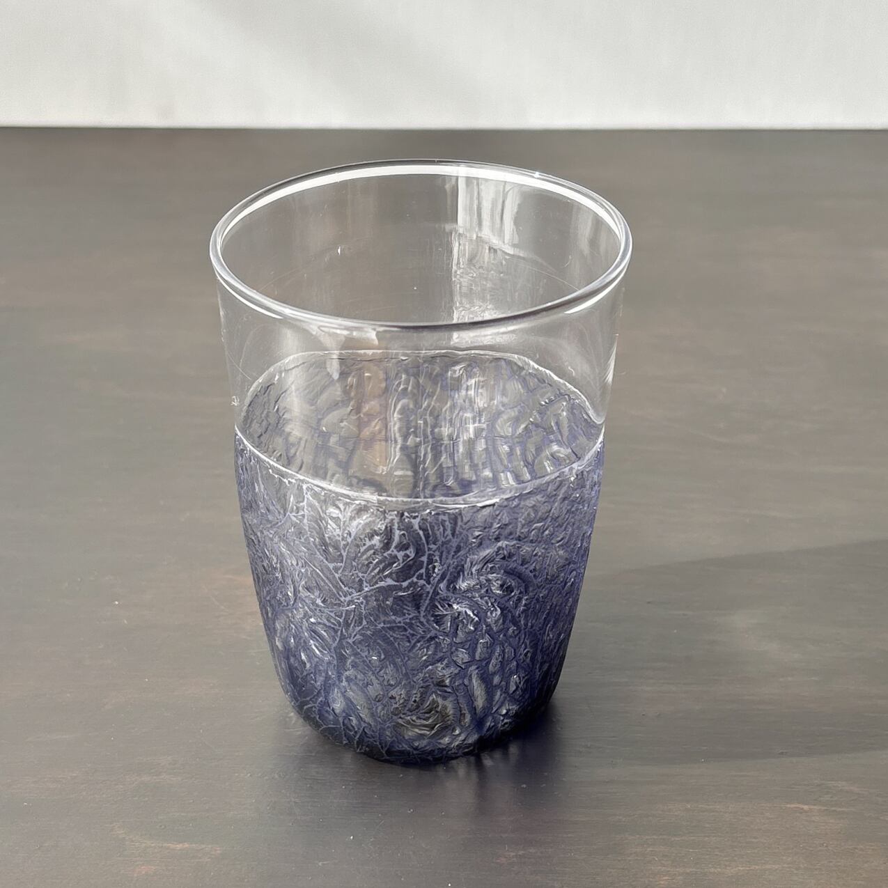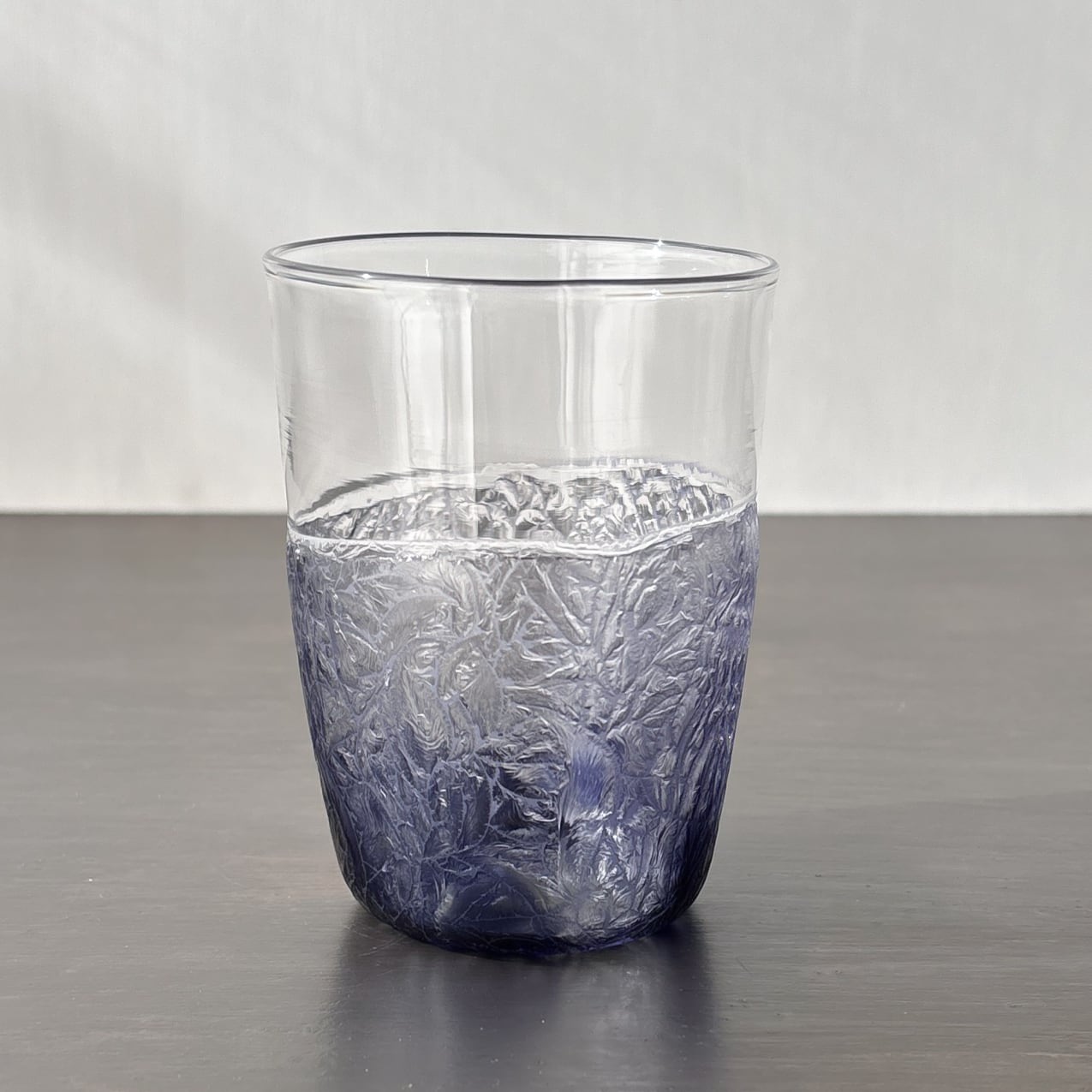 上部はクリアガラス、下部に透明な青紫色の色ガラスを一番外側に被せて、