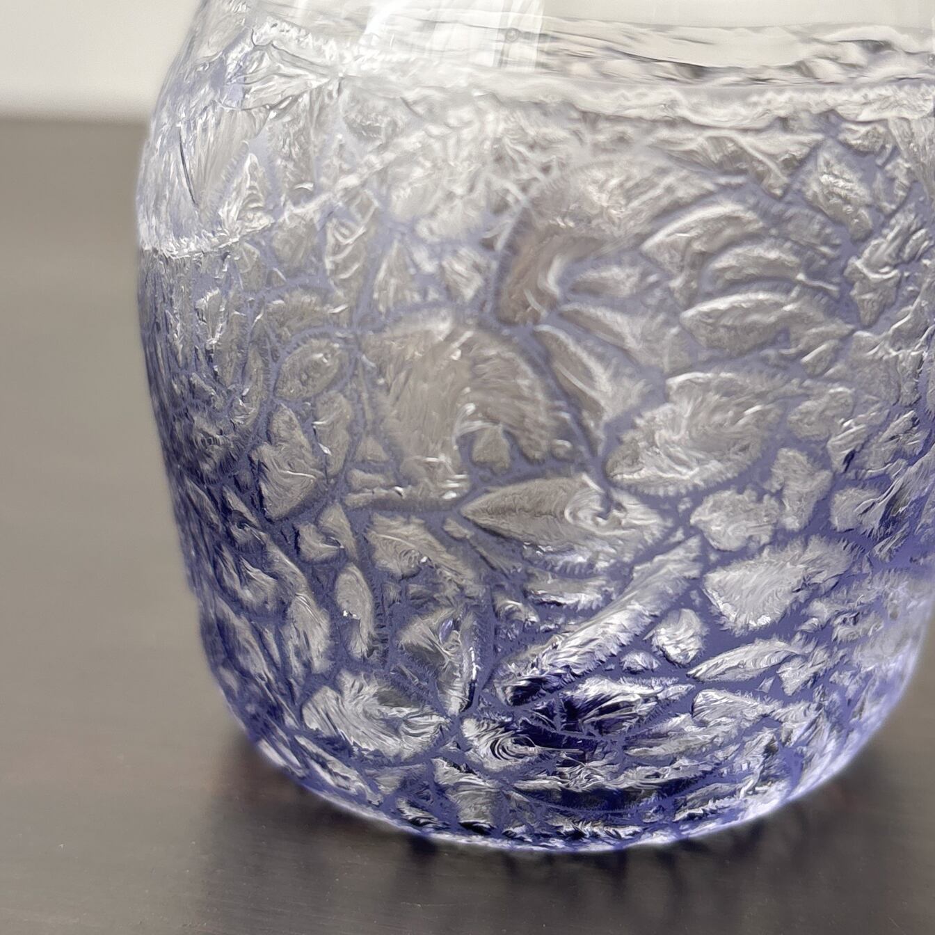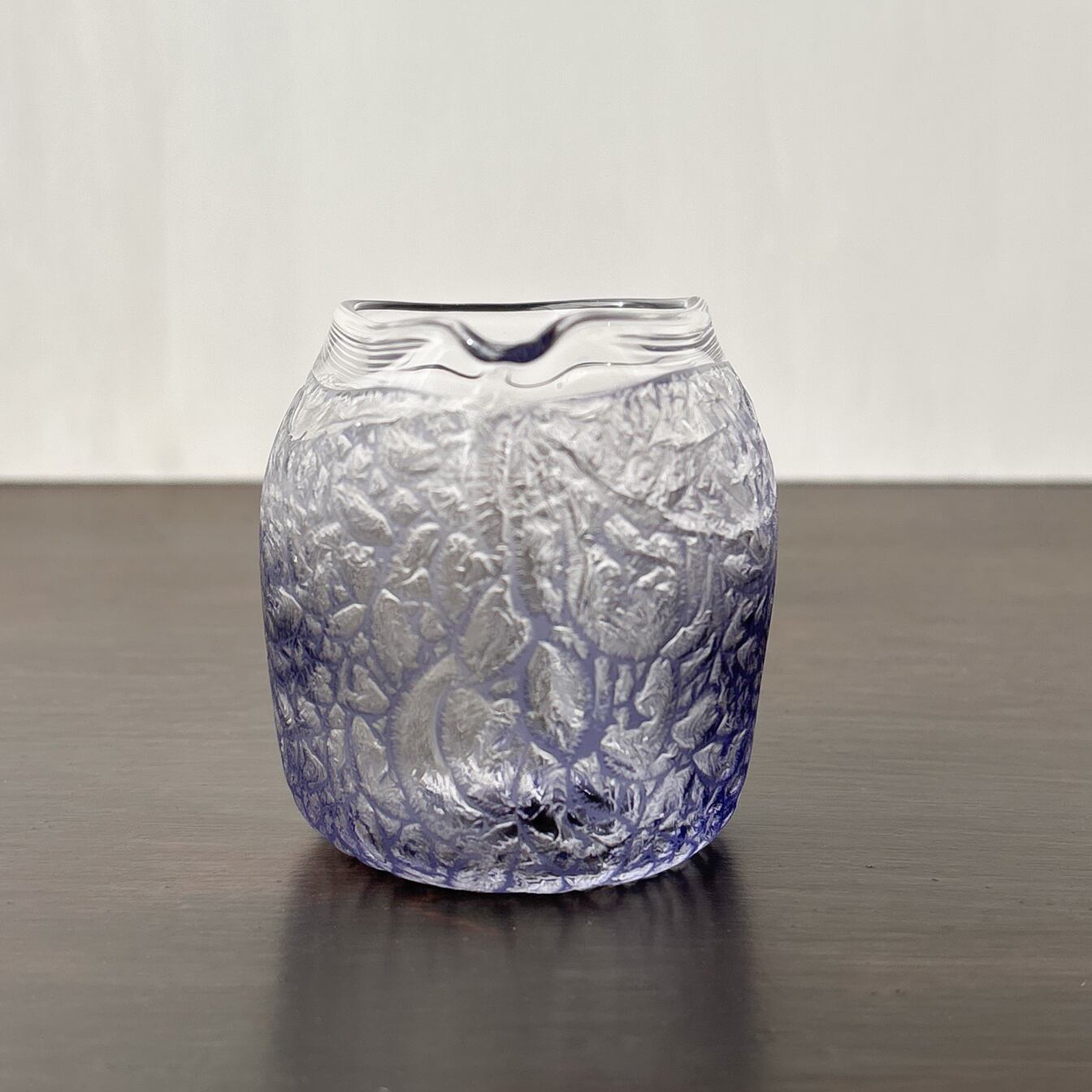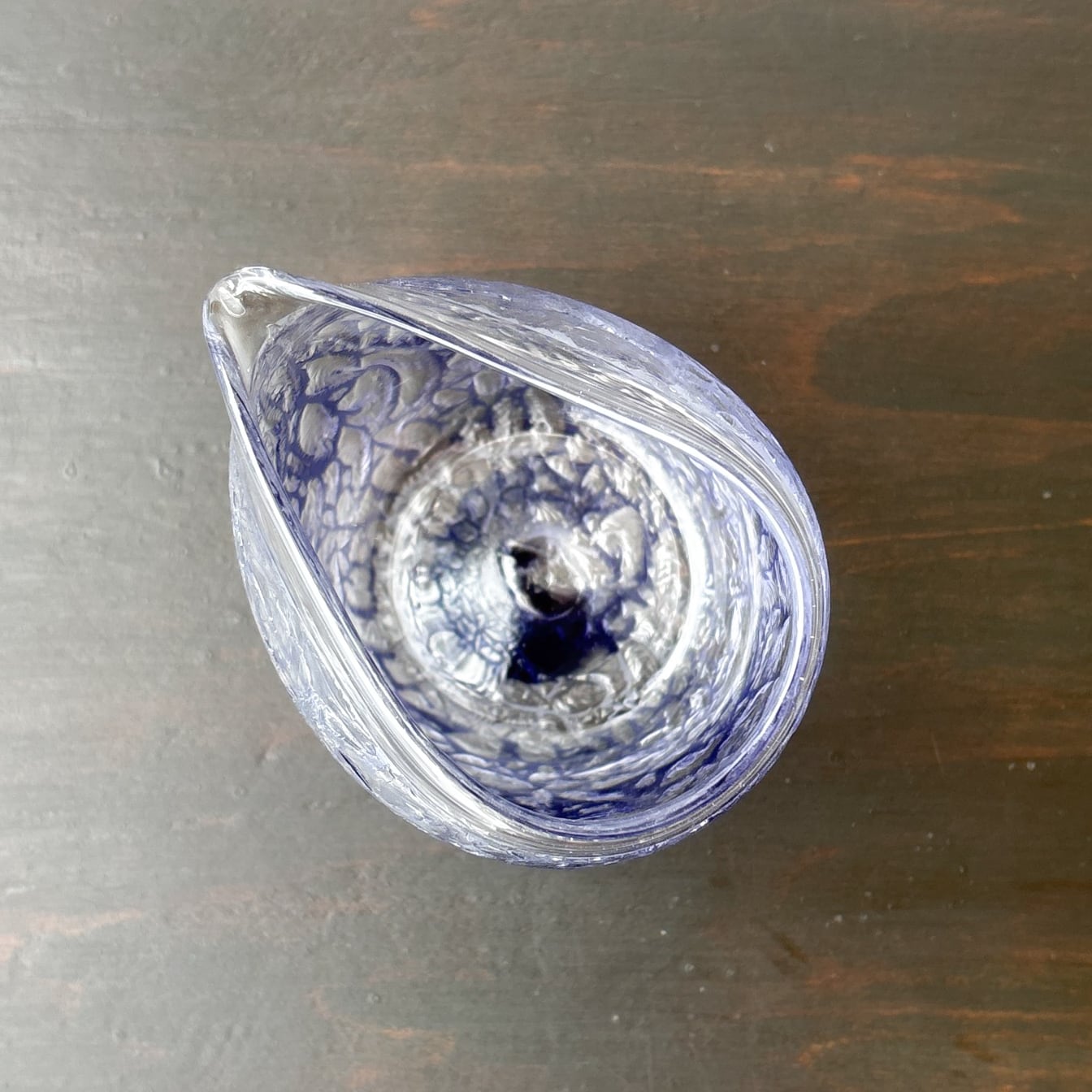 口元はクリアガラス、下部に透明な青紫色の色ガラスを一番外側に被せて、