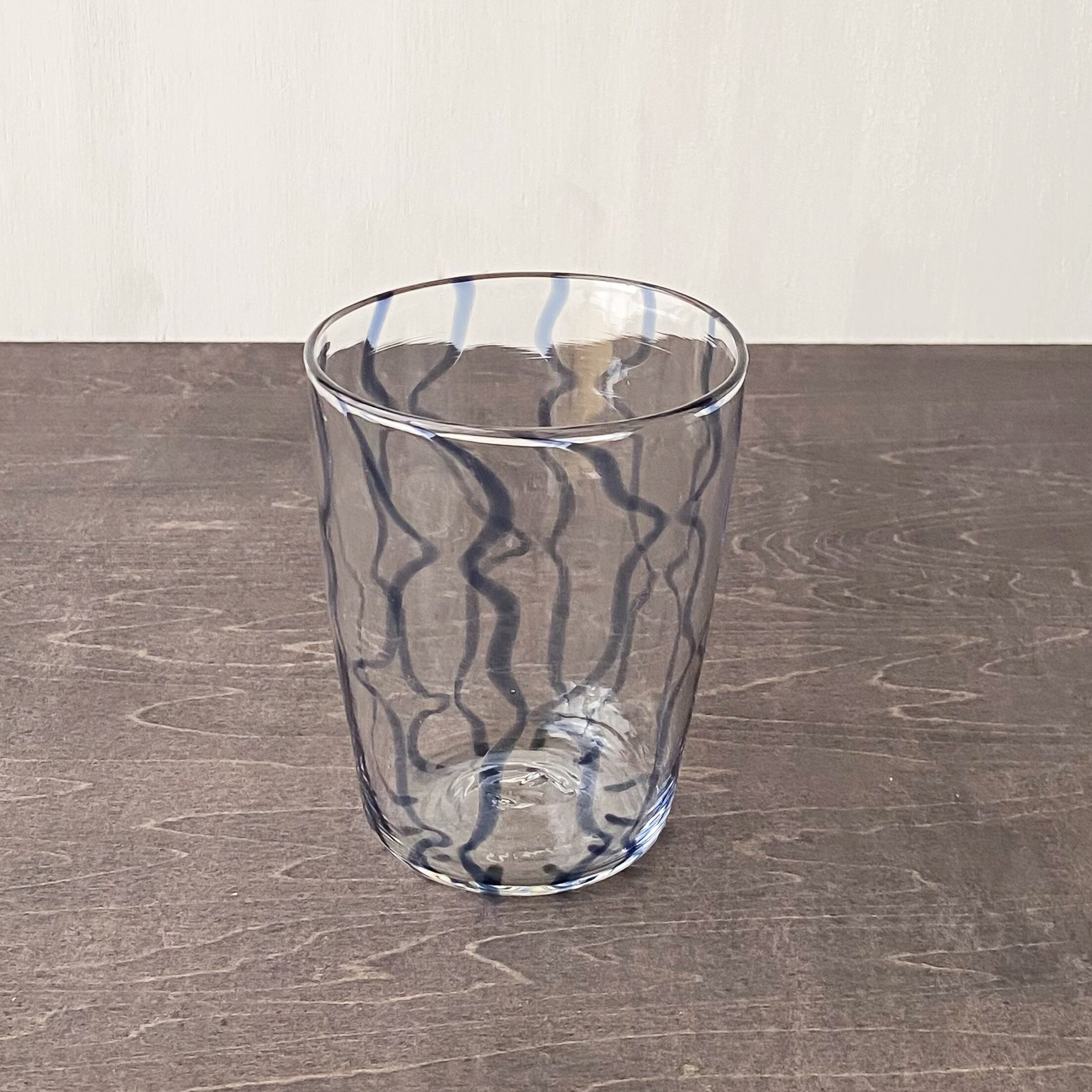 クリアガラスに透明の色ガラスで模様をつけたグラスです。