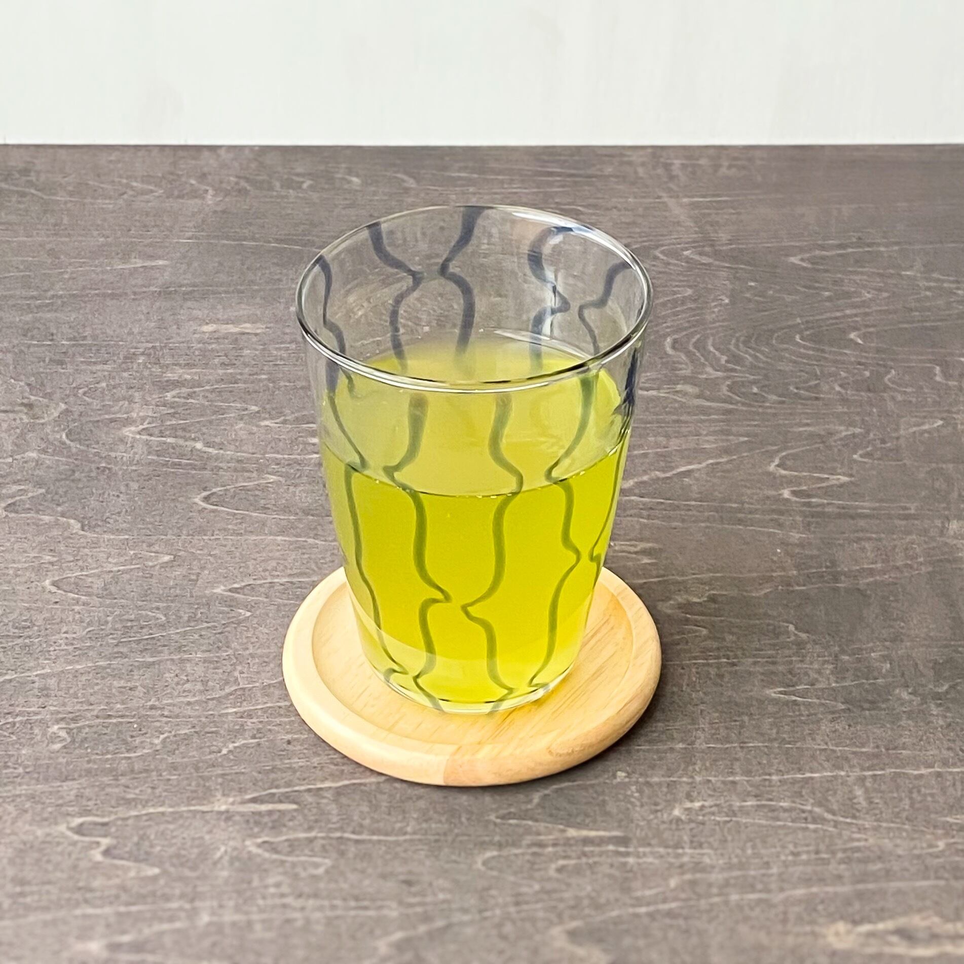 クリアガラスに透明の色ガラスで模様をつけたグラスです。