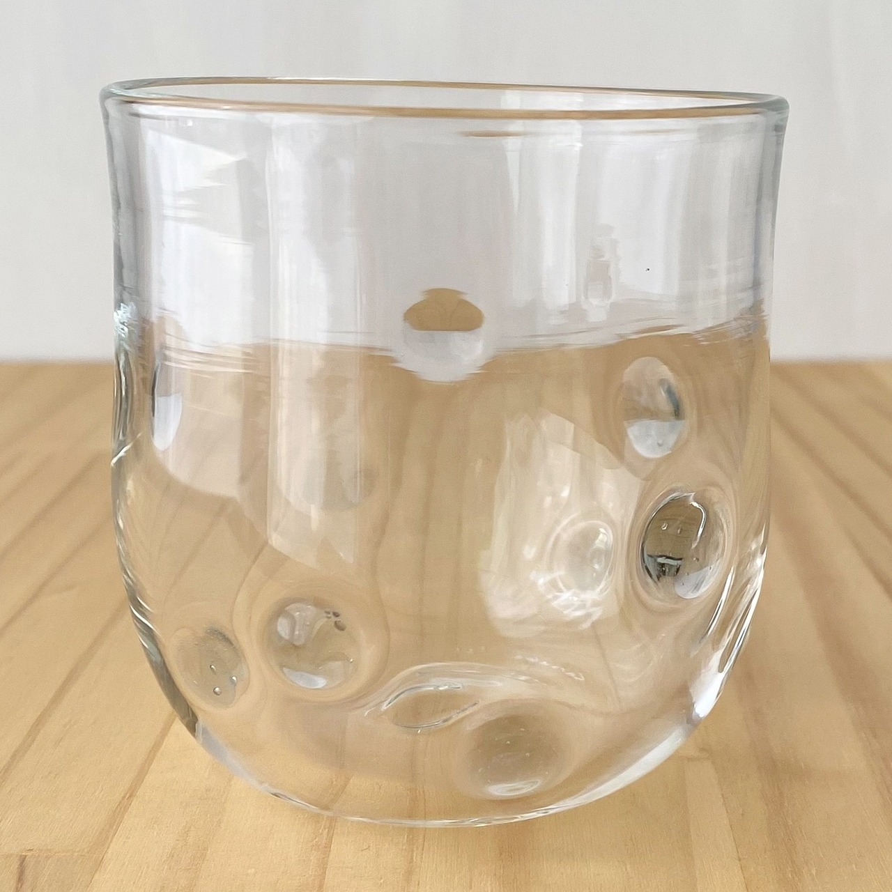 クリアガラスに透明な灰色の色ガラスで模様をつけたグラスです。