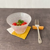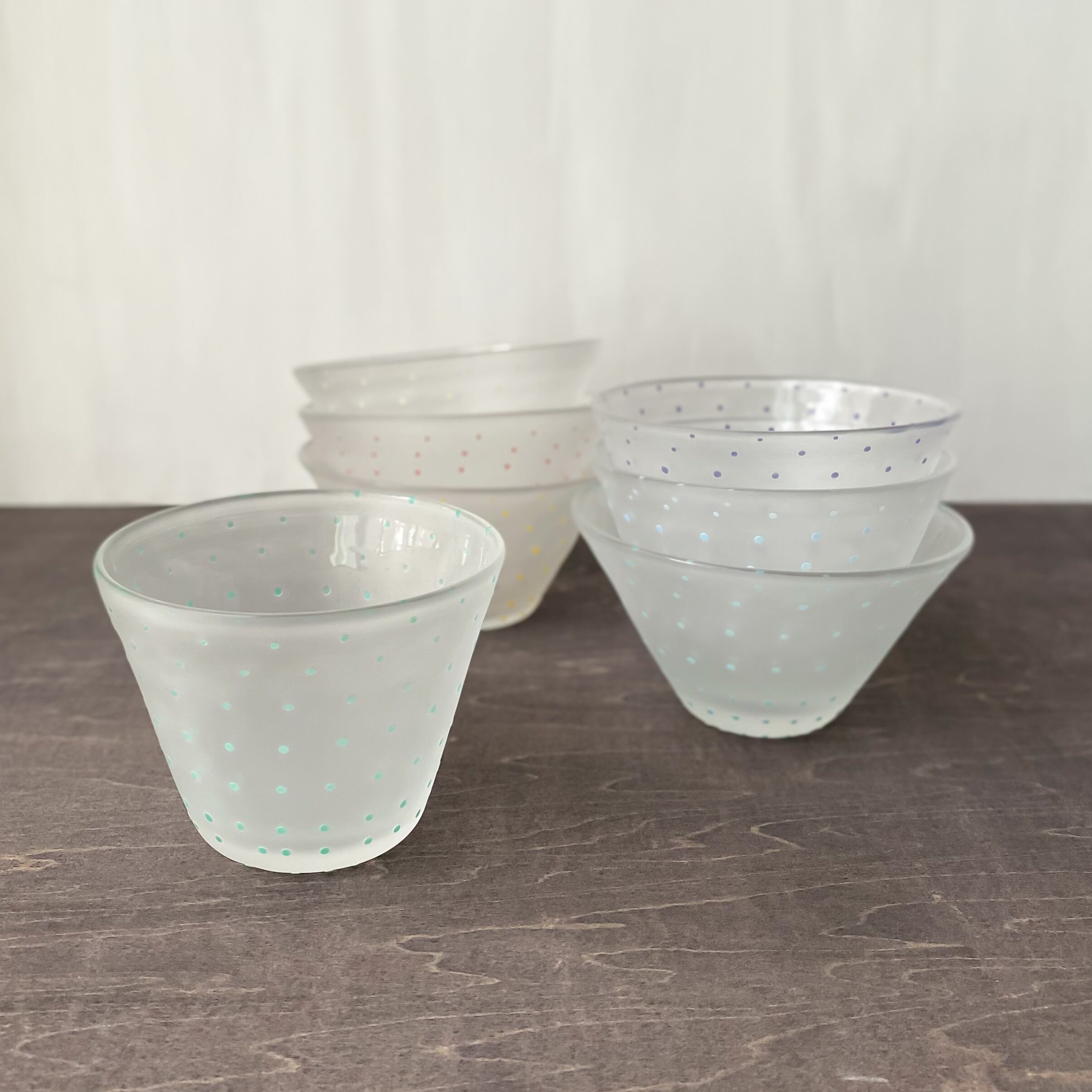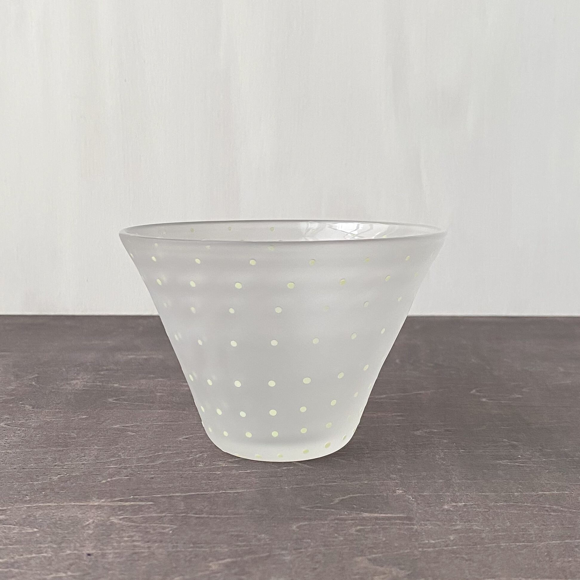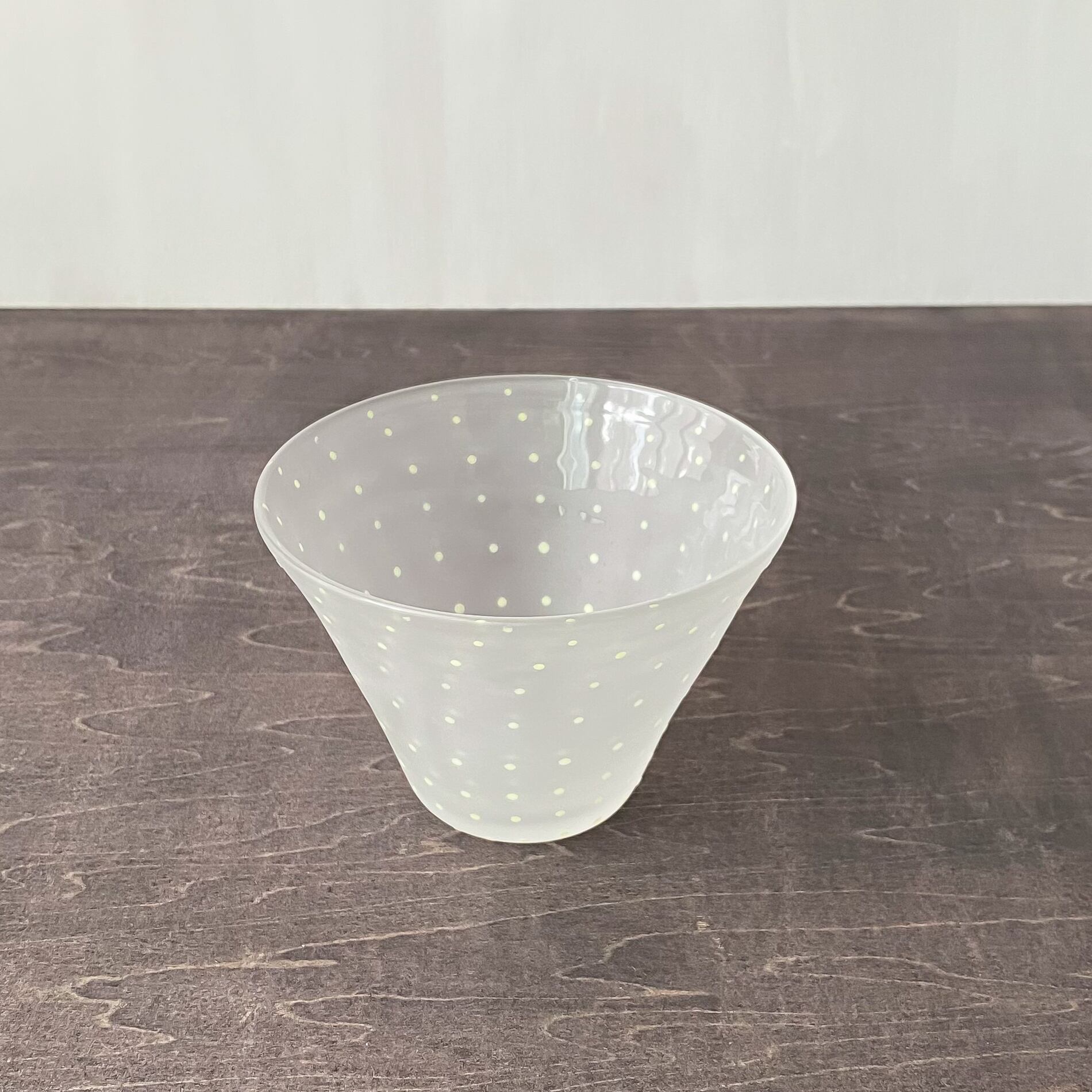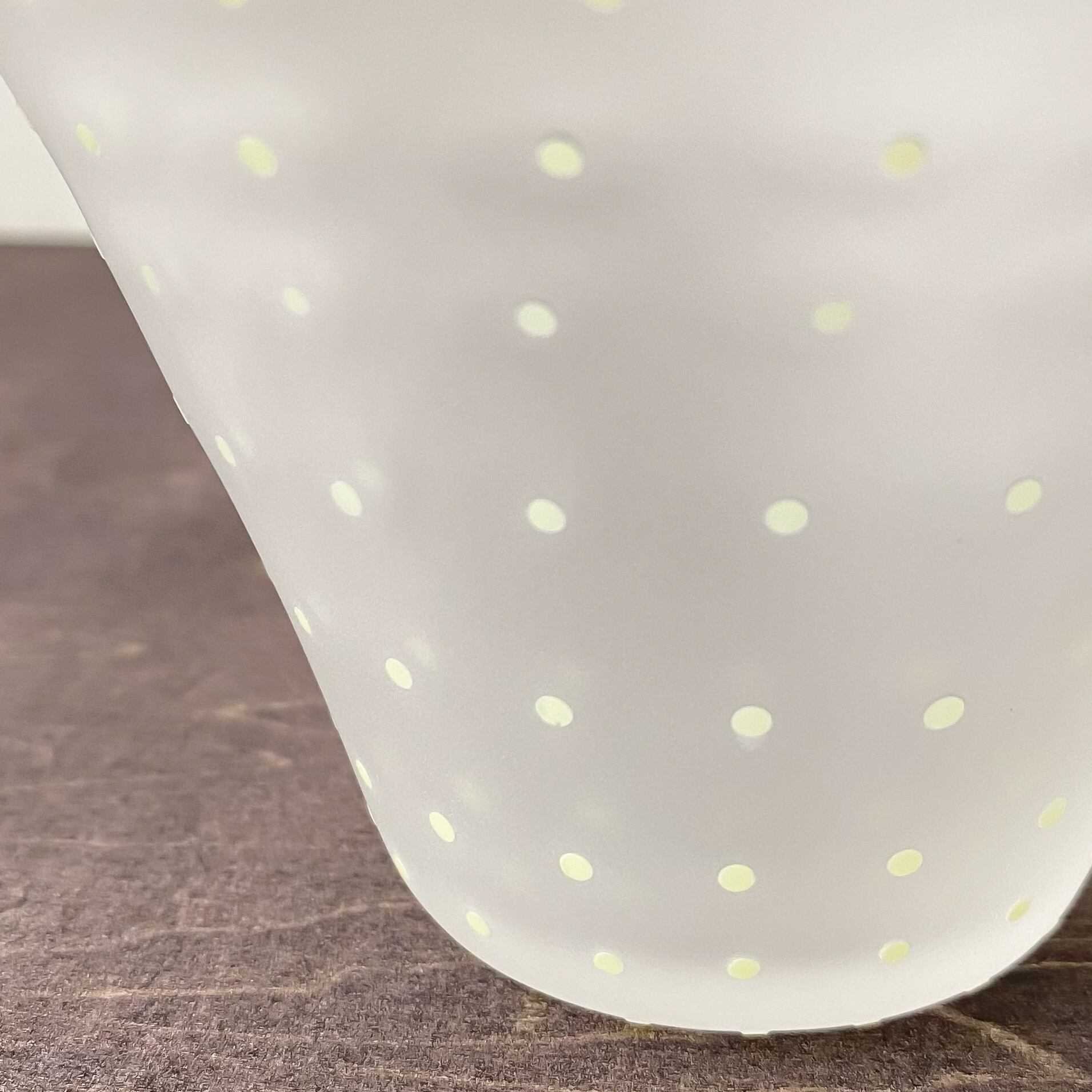 不透明なクリーム色の点が螺旋状に付いている小さなカップです。