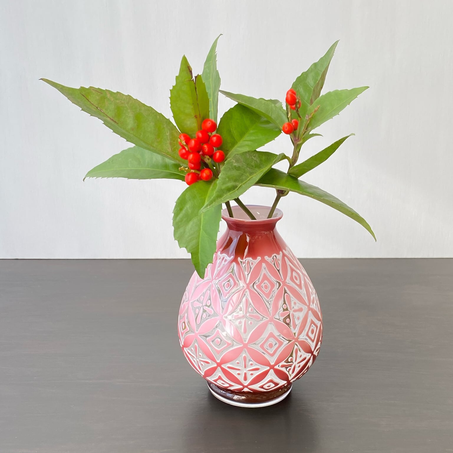 4・5枚目の写真では千両の小枝を2枝挿してみました。