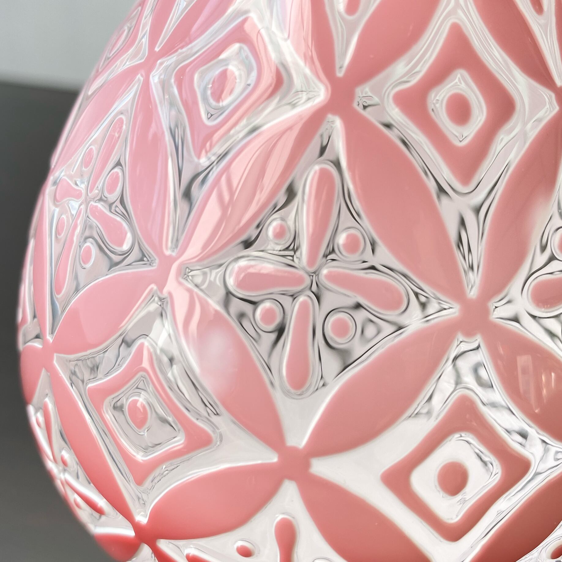 表面を模様の形にマスキングしてサンドブラストで削ったガラスの球を