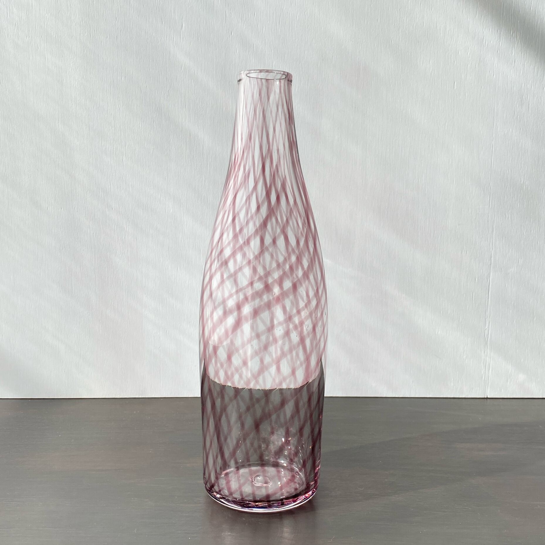 クリアガラスの表面に透明の赤紫色のガラスの棒をつけて、